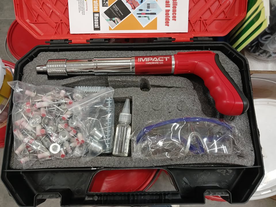 אקדח נוטים מקצועי גוף מתכת על אויר ,ארוז במזוודה עם כלים ו 100 ניטים עד 7.3 מ"מ