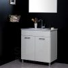 ארון עומד ציפוי פורמייקה כולל כיור משטח מחרס ומראה מלבנית מרחפת