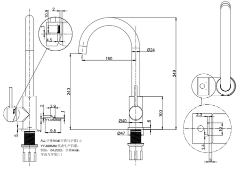 ברז מטבח נשלף גבוה מהודר כרום ניקל Aquila BELL דגם 1100A