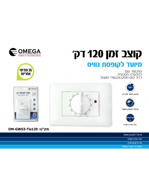טיימר 120 דקות מיועד לקופסת גוויס דגם: OM-GWS3-Tis120