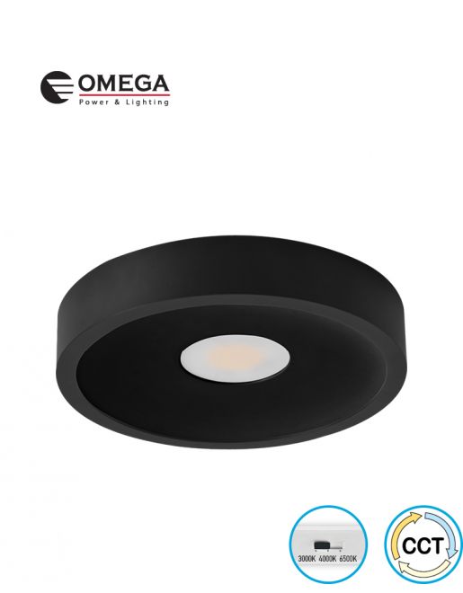 מנורה עגולה צמודה לתקרה 30W גוף שחור גוון אור משתנה לבחירה דגם:OM-RAY-30W-CCT-BK
