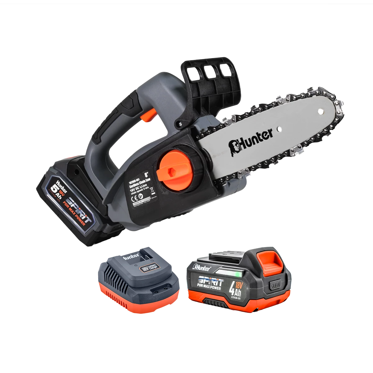 - משור שרשרת נטען 8" 18V מבית Hunter. משור שרשרת המיועד לחיתוף עץ, ענפים, גזעים, במבוק ועוד בצורה קלה, מהירה ובמינימום מאמץ.