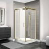 מקלחון הזזה פינתי בעל פרופיל מסגרת היקפית מניקל בצבע זהב