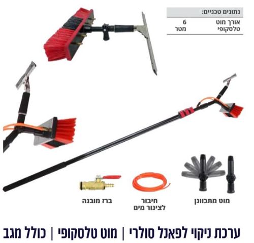 כולל מוט טלסקופי נפתח עד 6 מטר, מגב וברז מובנה