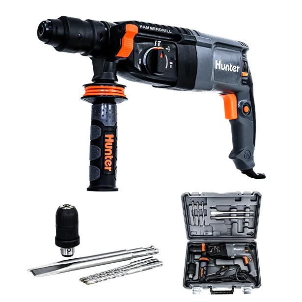 - פטישון חשמלי מקצועי 26 מ"מ ו-800W של Hunter. כלי עוצמתי בעל ביצועים גבוהים, אידיאלי לקשת רחבה של אנשי מקצוע: חשמלאים, שיפוצניקים, מתקנים קבלנים ועוד. ורסטילי, קל משקל ואמין, ומעניק התמודדות מהירה וקלה עם קידוח עץ, מתכת וקידוחים של קירות בטון עד 26 מ"מ.
