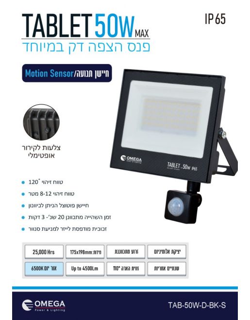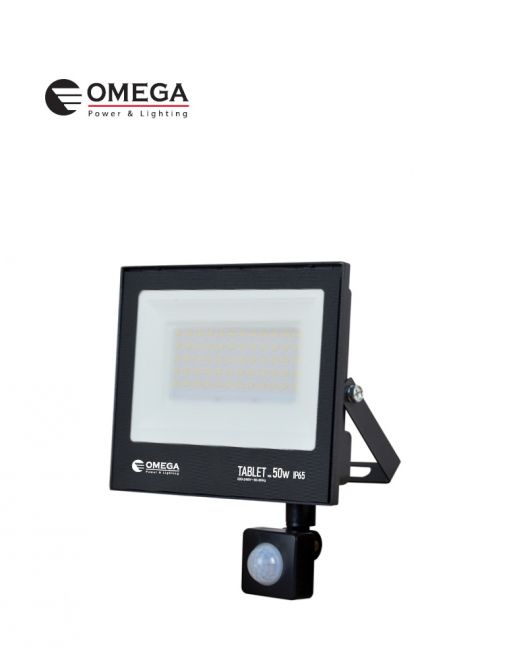 פרוז'קטור -פנס הצפה TABLET 50W גוף שחור +חיישן תנועה 6500K דגם TAB-50W-D-BK-S