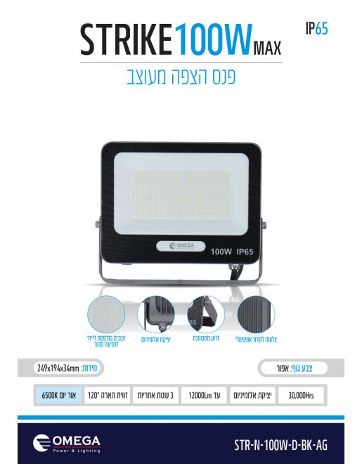 פרוז'קטור 100W -פנס הצפה מעוצב New STRIKE דגם: STR-N-100W-D-BK-AG