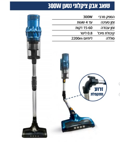 שואב אבק ציקלוני נטען עוצמתי.עיצוב חכם ופונקציונלי 3 דרגות שאיבה